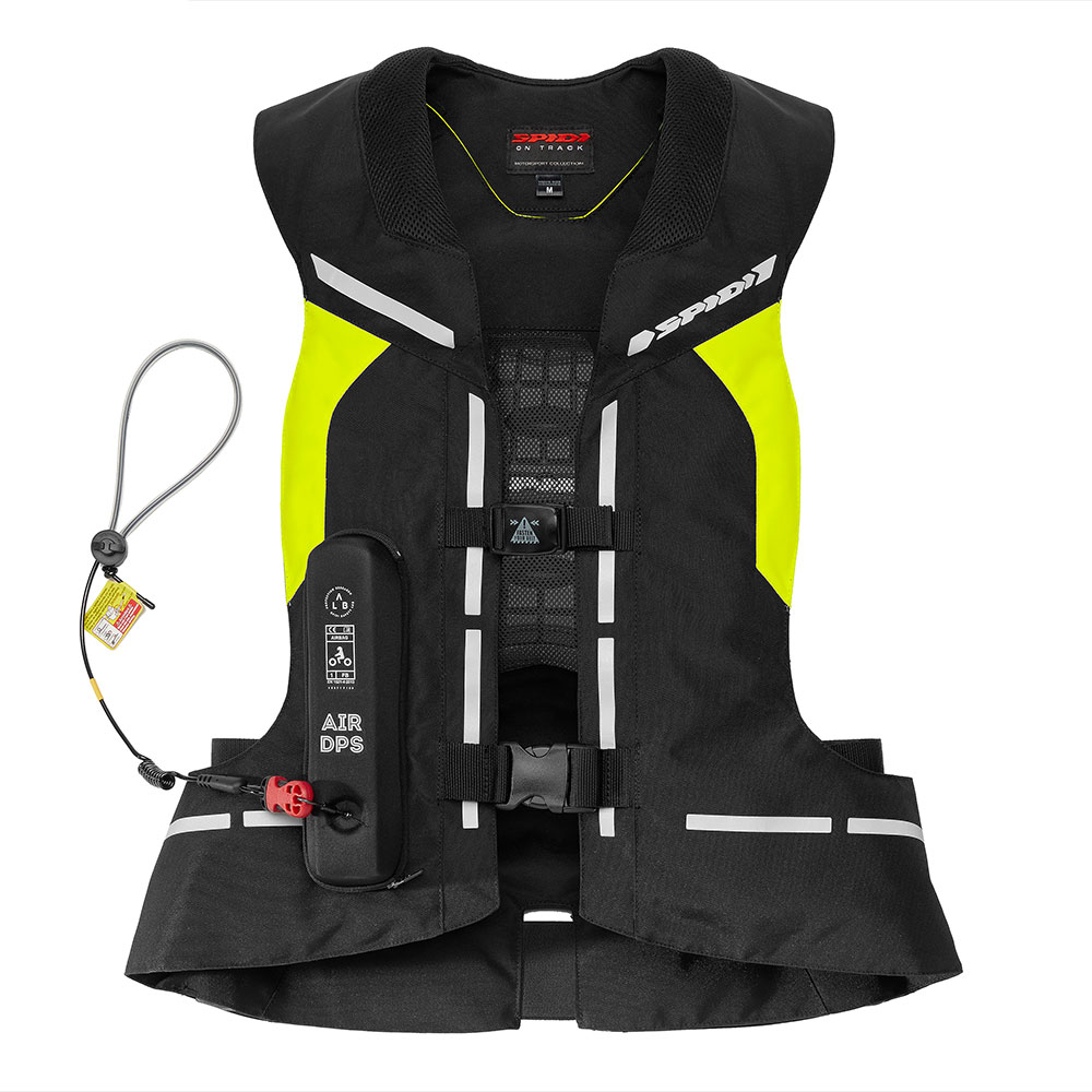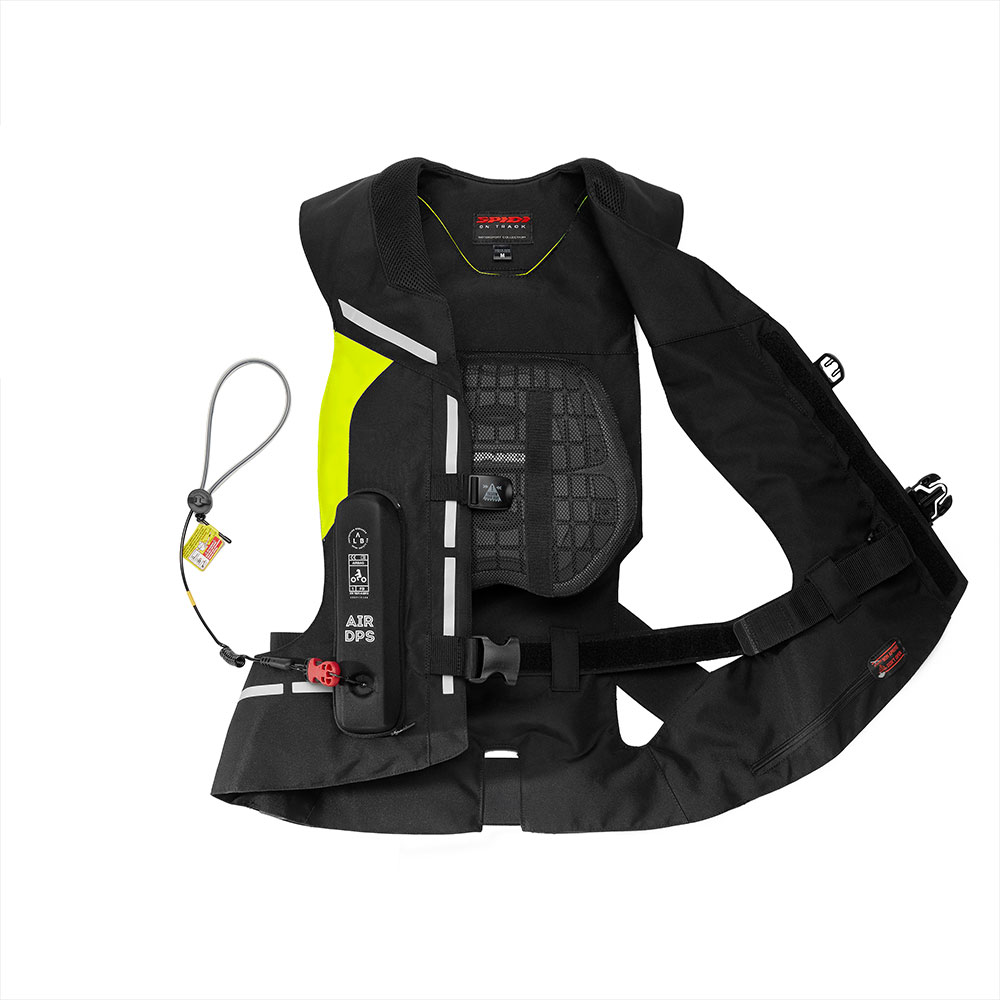 Gilet con airbag da indossare sopra qualsiasi giacca da moto, con il suo sistema DPS si gonfia e protegge in caso di caduta. Attivazione con cavo assicurato alla moto. Un cuscino di 23 litri avvolge il busto e il collo del pilota, aumentando la sicurezza in caso di incidente. Il sistema funziona in combinazione con il casco per ridurre il movimento del collo, limitando torsioni pericolose. L’airbag gonfiato copre anche schiena e torace. Il tempo totale di attivazione e gonfiaggio del sistema è di 200ms. Il sistema è ricaricabile in autonomia dopo l’attivazione.
