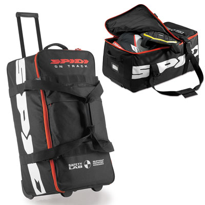 Borsone in PL dotato di fondo rigido, manico estraibile a doppio binario, ruote in silicone, piedini in plastica, doppie maniglie imbottite, apertura perimetrale con zip doppie per un facile accesso, ampia tasca frontale con cerniera, cinghie di restringimento micrometrico in nastro chiuse da moschettone in plastica. Ideali per il trasporto e la custodia dell’equipaggiamento da moto. Misure: 74x37x30 cm Volume: 82 litri